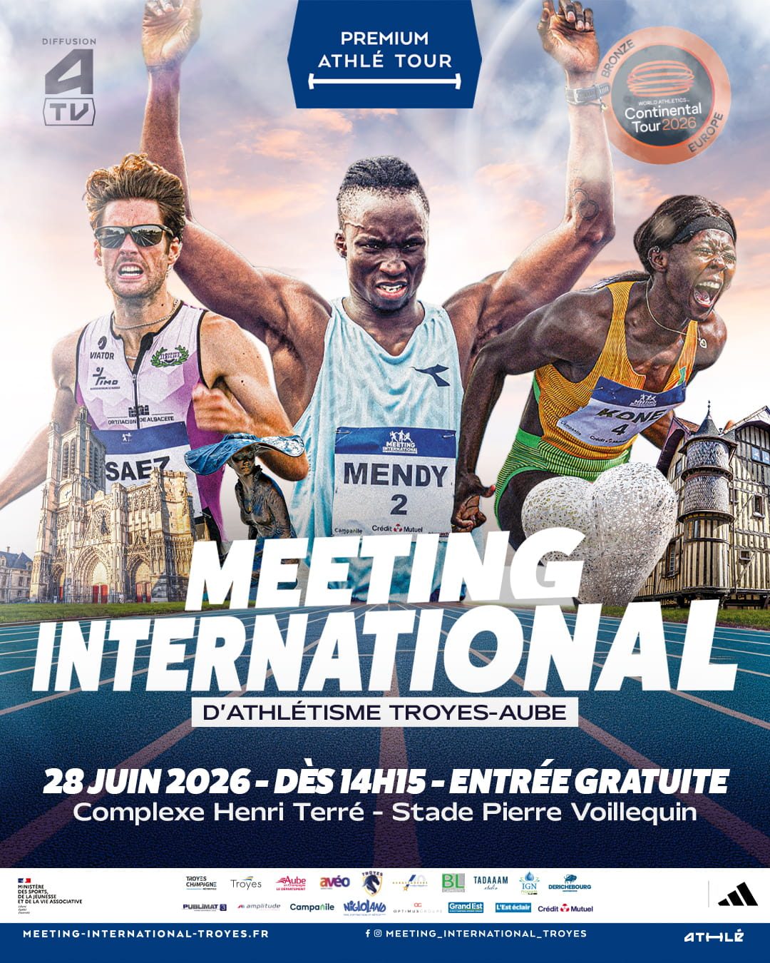 Nous vous attendons nombreux le dimanche 28 juin 2026 au complexe Henri Terré sur la piste Pierre Voillequin cette nouvelle édition du Meeting international d’athlétisme de Troyes dans l’Aube.